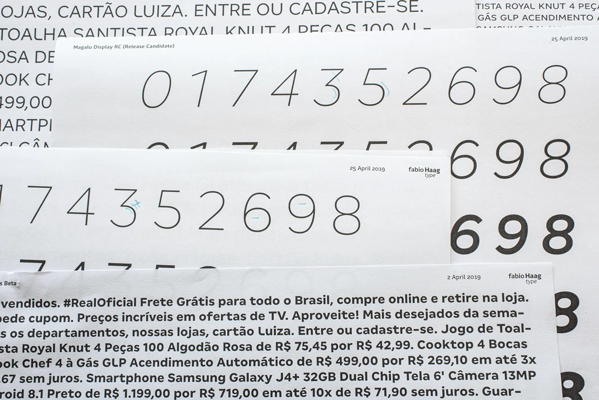Os números ganharam uma atenção especial em todas as famílias. Numerais superiores e inferiores foram desenhados especialmente para facilitar a diagramação de preços, incluindo centavos reduzidos, sem distorções ou a necessidade de ajustes manuais.